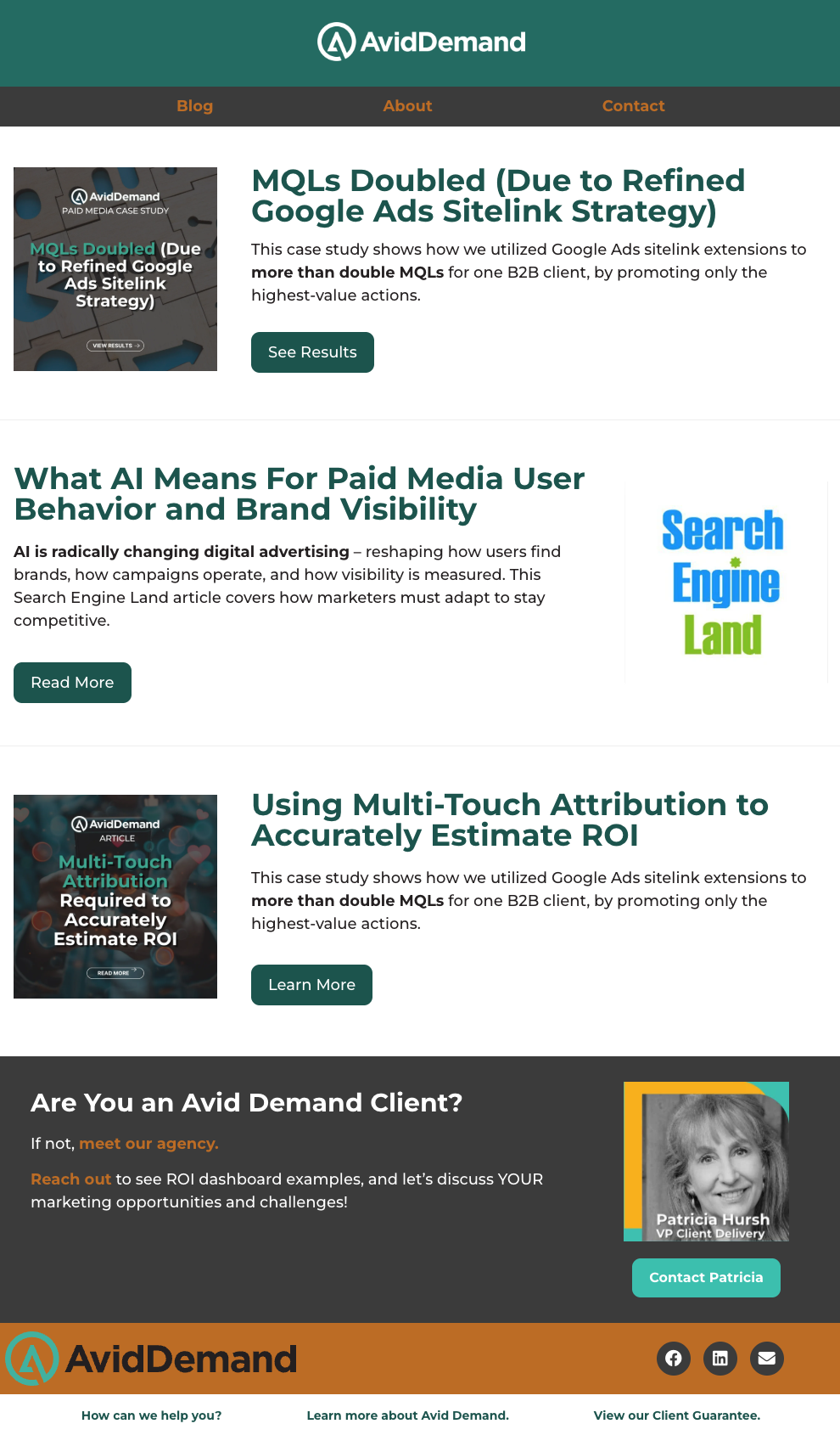 At Avid Demand our mission (and passion) is measurable marketing that proves ROI.